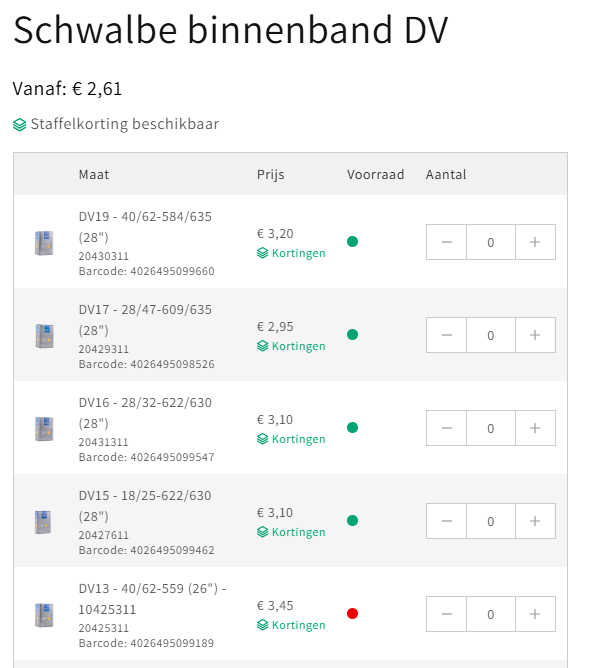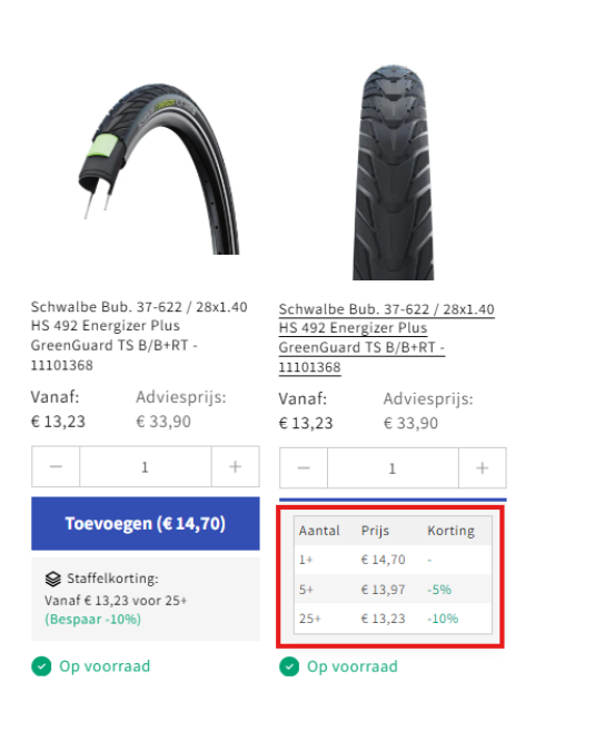 Voorraad, adviesprijs en staffelkorting zichtbaar op productkaart