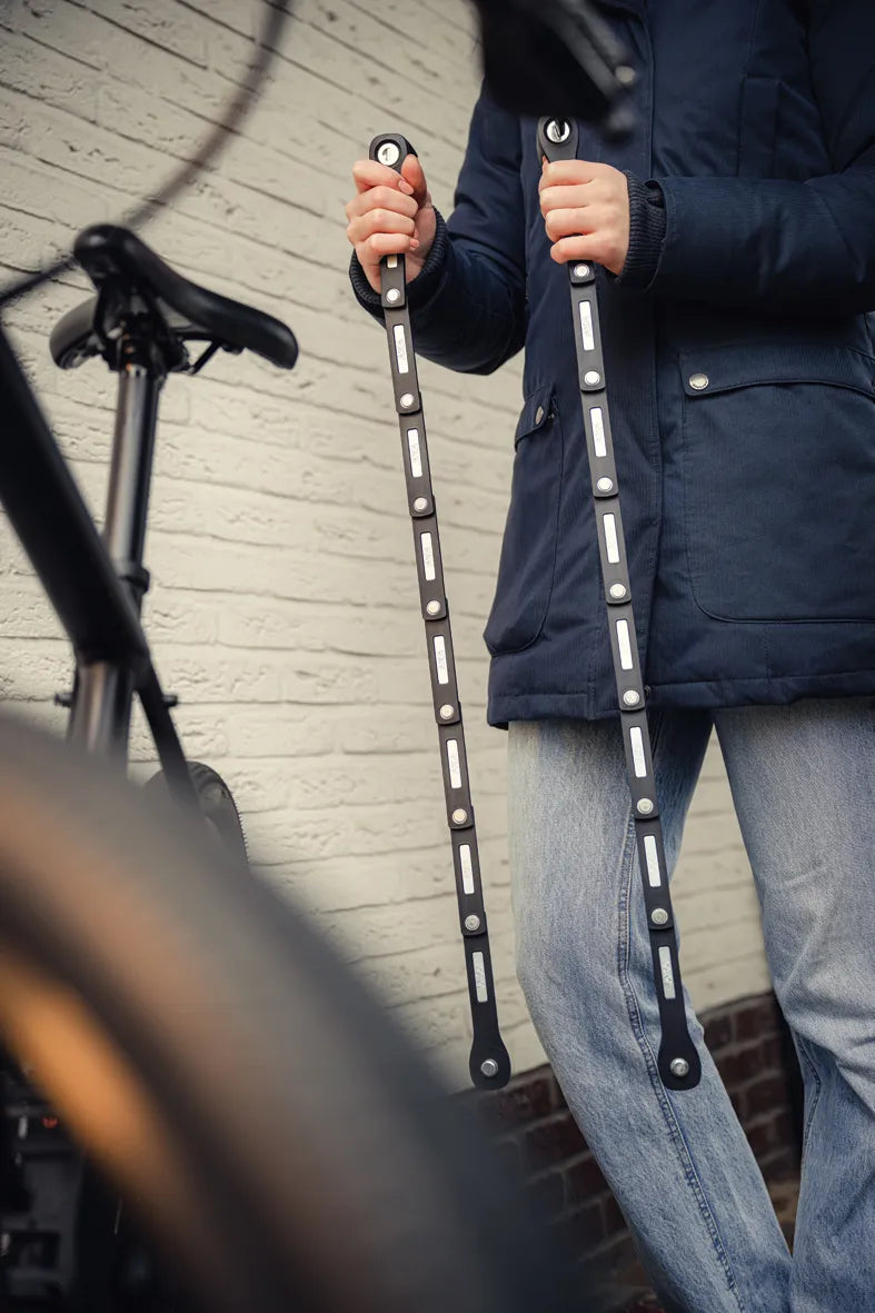 De Fold Lite is 80 cm lang en heeft flexibele scharnierpunten, hierdoor kan je je fiets makkelijk aan een paal of hek vastmaken. De diameter van de gehard stalen schakels is 5 mm. Verder hebben de schakels een rubberen behuizing die ervoor zorgt dat er geen krassen op je fiets komen.