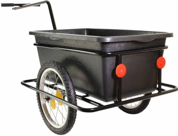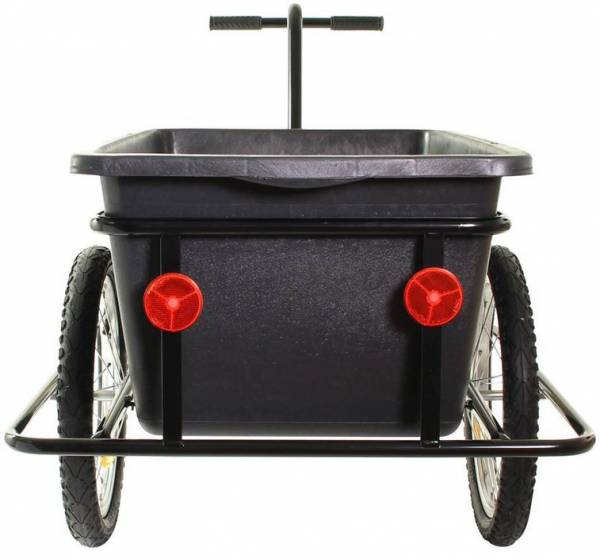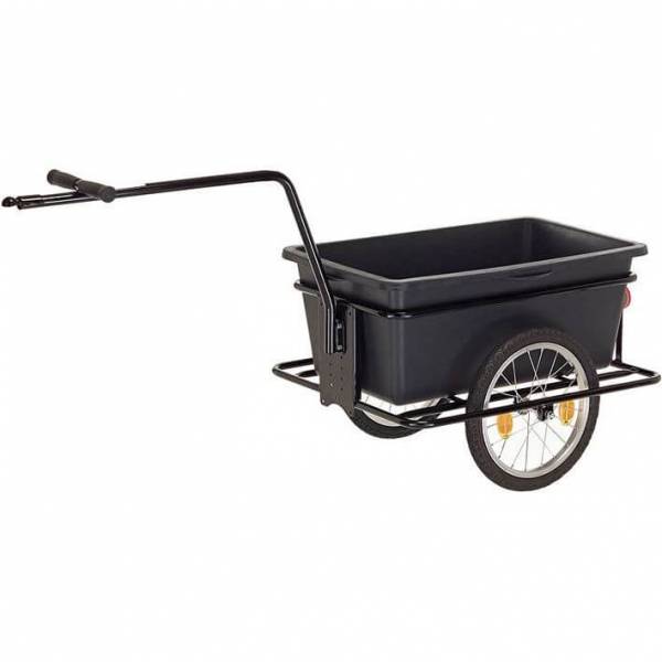 Onze alleskunner voor robuust en veelzijdig transport. •1 stalen buisframe •2 spaaks wielen 16 •1 hoge dissel (A) •1 kogelkopkoppeling •1 transportbak •8 reflectoren •1 handleiding