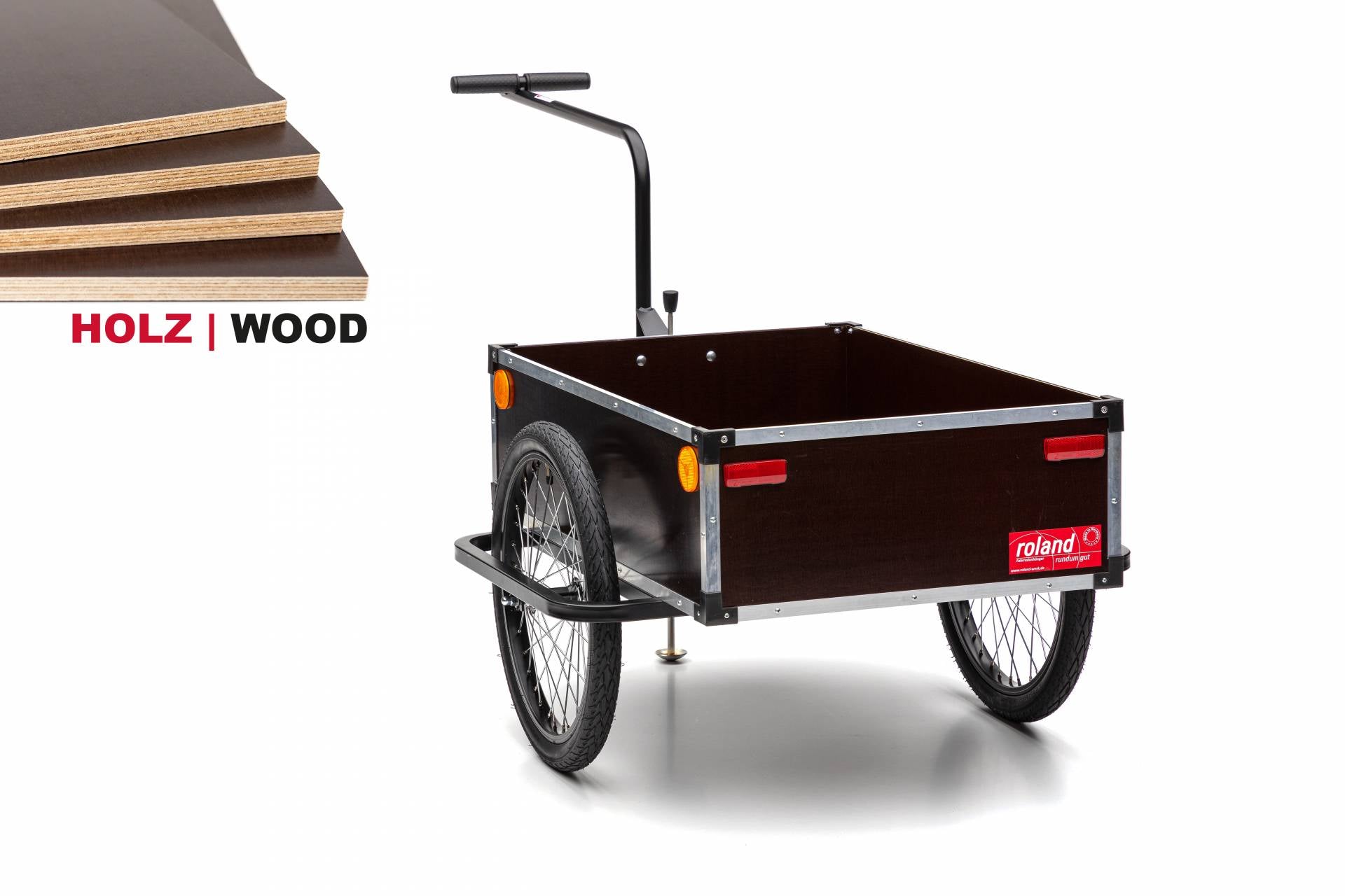 Een goede verhouding tussen eigen gewicht en laadvermogen – dat is het voordeel van de PROFI. Dit wordt bereikt door de stabiele asondersteuning van de spaakwielen in het frame en de robuuste berkenhouten behuizing van de transportbox. Aluminium randprofielen en hoekbeschermers maken de professionele uitstraling van de PROFI compleet.
