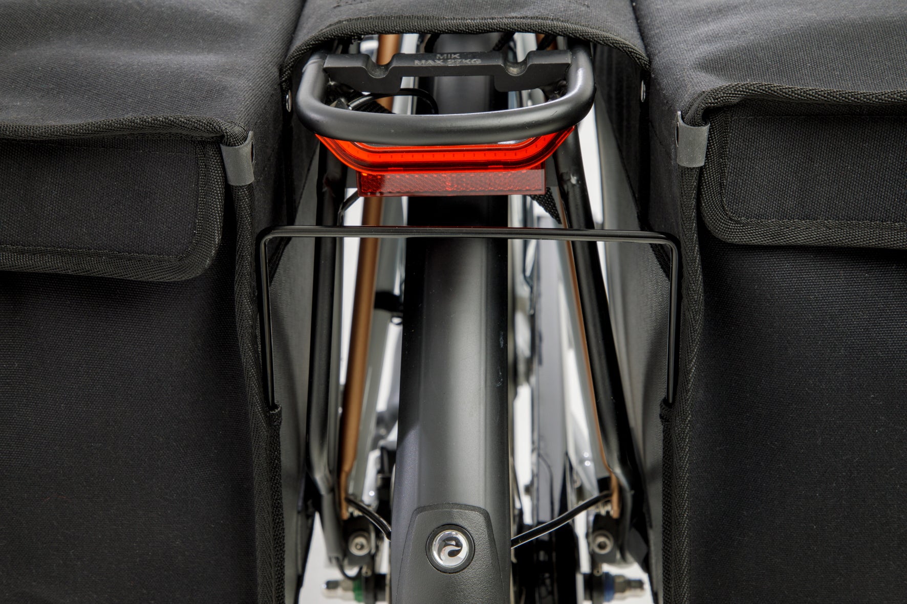 - Stevige, ruime fietstas gemaakt van waterafstotend canvaslook polyester.