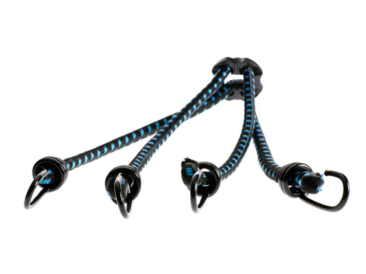 De Simson Spinbinder zwart-blauw heeft een verstelbare veiligheidsklem om stevig en veilig spullen vast te zetten op de bagagedrager. De spinbinder is eenvoudig te verstellen of te splitsen in twee losse binders door het kunststof tussenstuk te verwijderen. De lengte van de spinbinder is 60 centimeter en de 4 armen maken de spinbinder geschikt voor diverse doeleinden. Zo is de universele snelbinder onder andere te gebruiken voor fiets, scooter of motor.