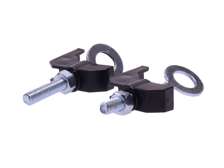 Deze kettingspanners worden met de ring bevestigd aan de achterwielas. Zet vervolgens de beugel tegen de achtervork voor het gemakkelijk en snel opspannen van de fietsketting. De kettingspanners worden geleverd per 2 stuks.